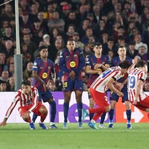 欧冠1/4决赛首回合,马德里竞技客场对阵巴塞罗那,上半场阿尔瓦雷斯直接任意球破门,成为第三位在欧冠淘汰赛打入任意球的阿根...